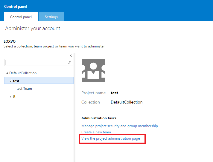 - Select code repository from left code browser and launch 'View the project Administration page'