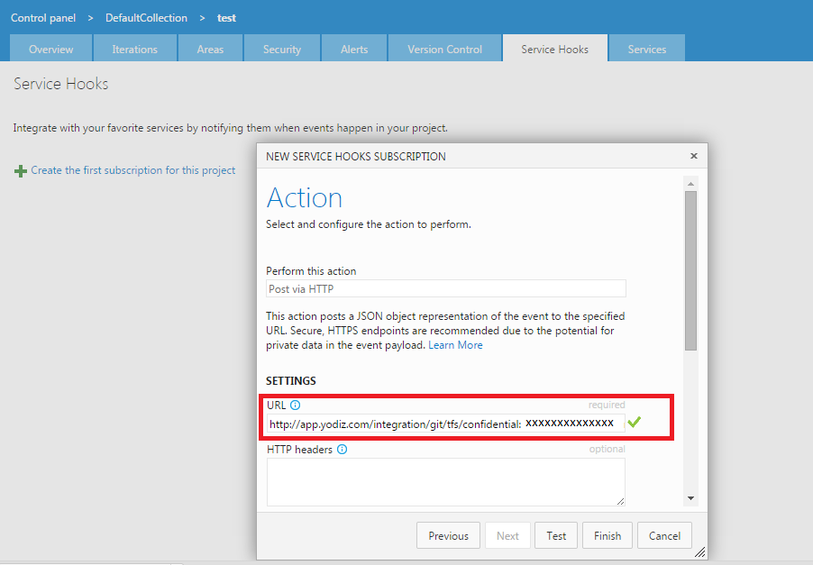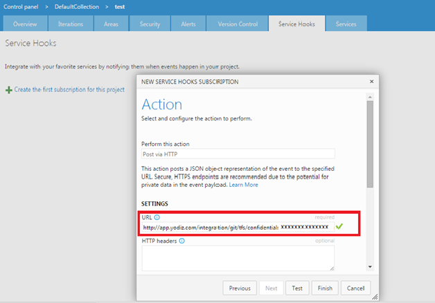 - Paste here the Yodiz URL that you copied at step 1 to "URL" text field.