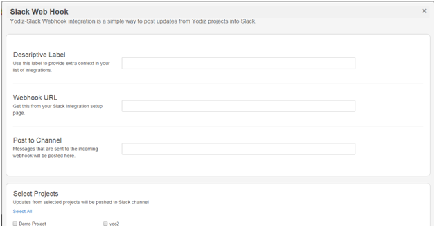 - Finally select the projects for which you want updates to be pushed to the Slack channel.